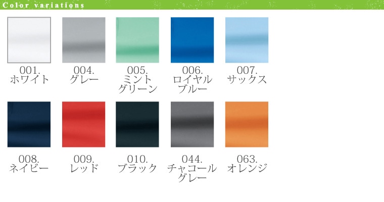 サラリとした素材で着心地爽快です。10色のカラー展開で職場のイメージカラーにピッタリのものが見つかるはず!
