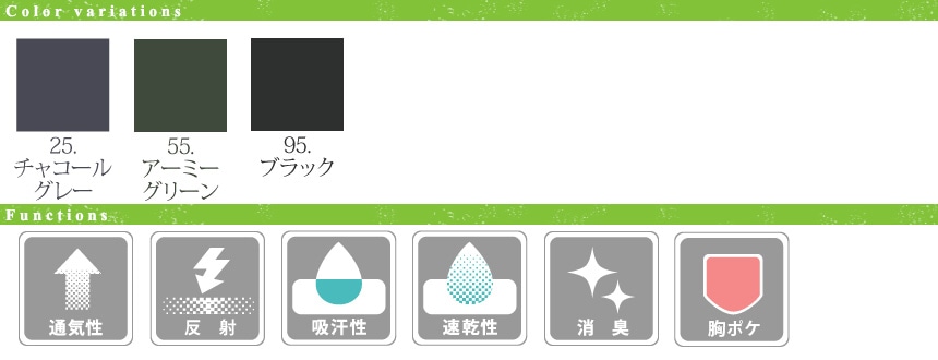 - ・胸や腕のポケット付近に切り替えしなどの縫い目がある場合、または伸縮素材を使用している場合、シワや当て布の透けの発生や、縫い目の上に刺繍が入ることがございます。