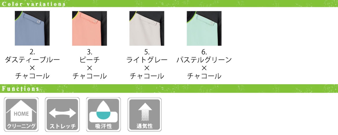 優しいカラー展開で院内を明るく、患者さんの気持ちも癒してくれる、機能性抜群のジップアップスクラブです。