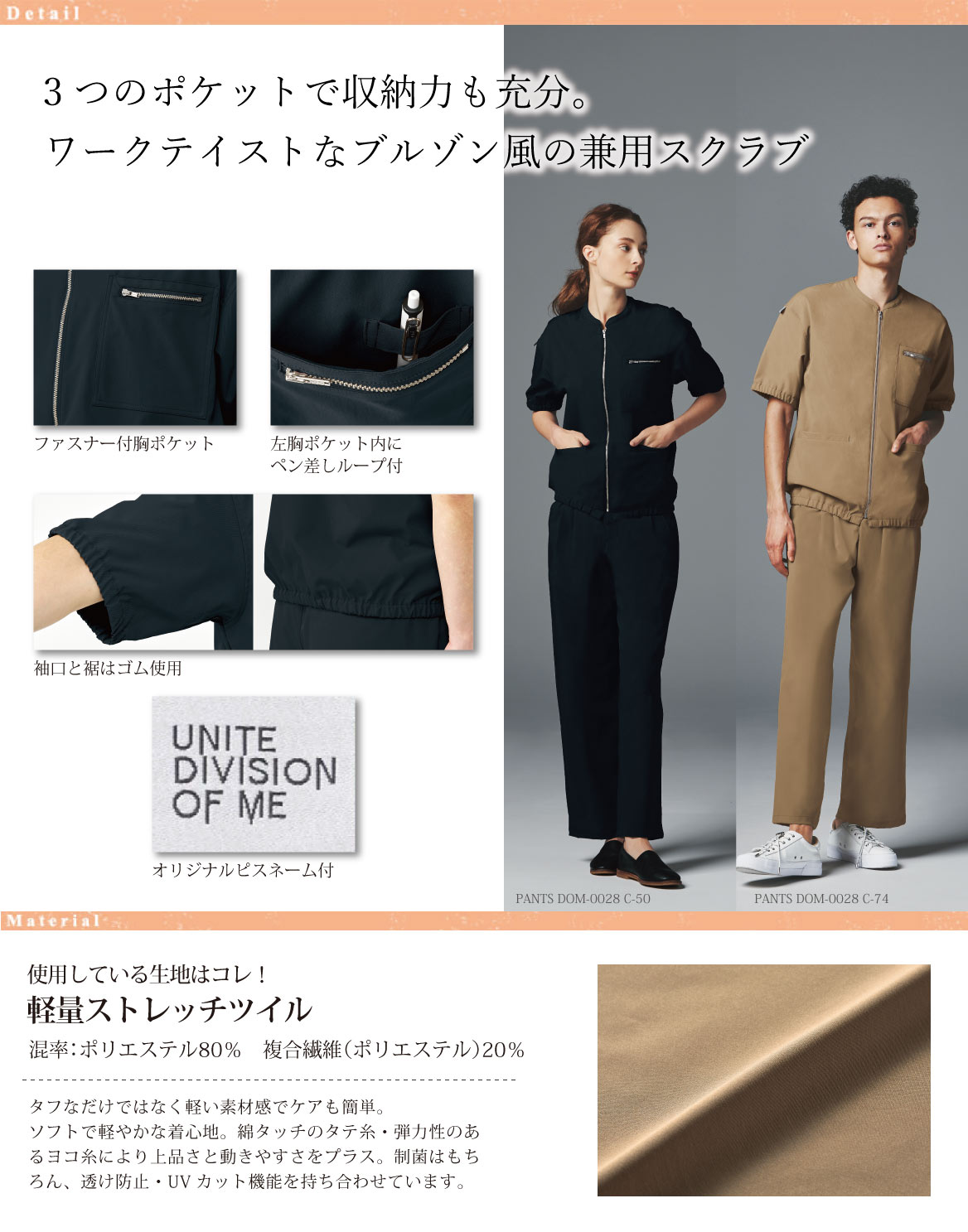- ■ 仕様/フロントファスナーあき、左胸ポケット(ペン差しループ付)、両脇ポケット、袖口ゴム、裾ゴム