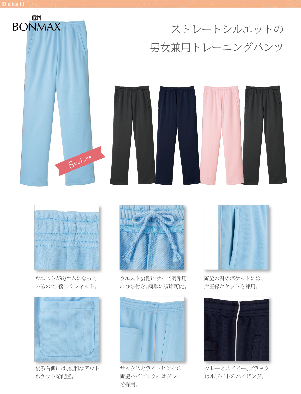 ストレートシルエットの男女兼用トレーニングパンツ。