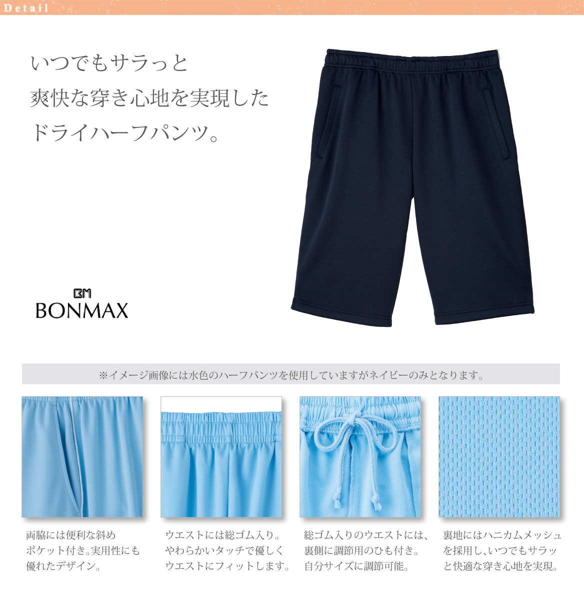 いつでもサラっと爽快な穿き心地を実現したドライハーフパンツ。