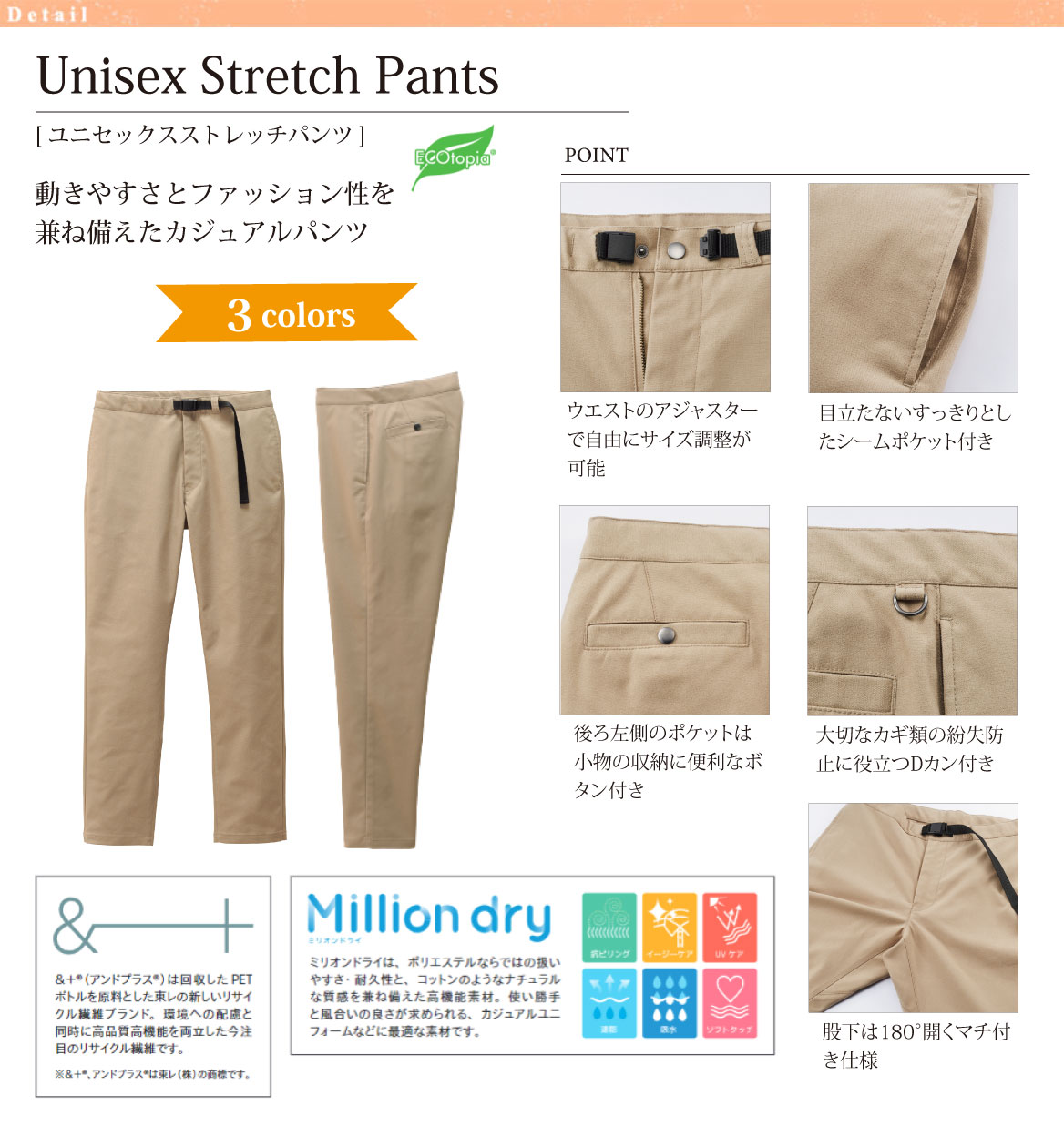 ウエストのアジャスターで自由にサイズ調整が可能