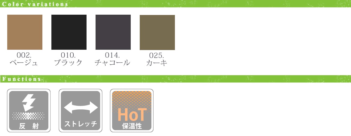 - ■ 素材:綿64% ポ リエステル34% ポリウレタン2%