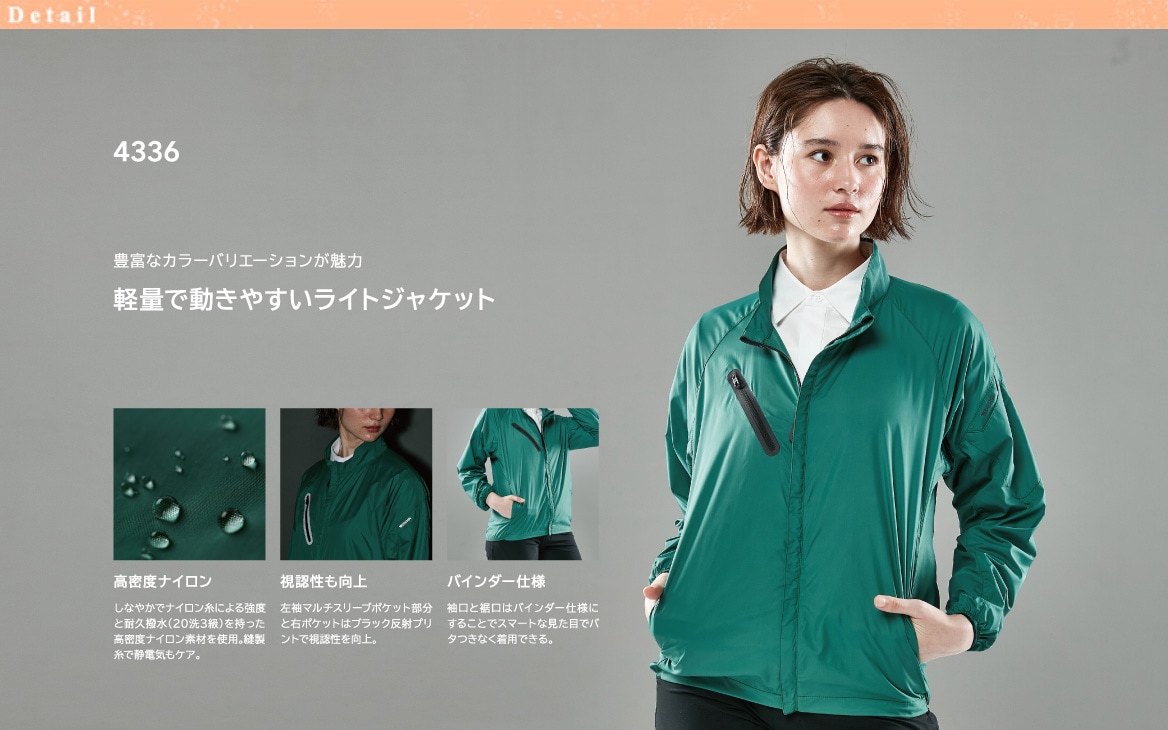 豊富なカラーバリエーションが魅力。軽量で動きやすいライトジャケット