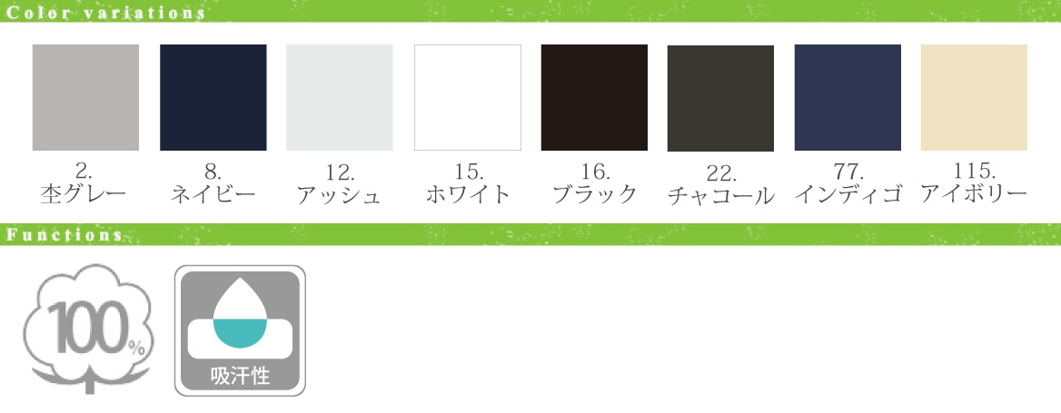 - ■ 混率/綿100% ※[杢グレー]綿90% ポリエステル10%