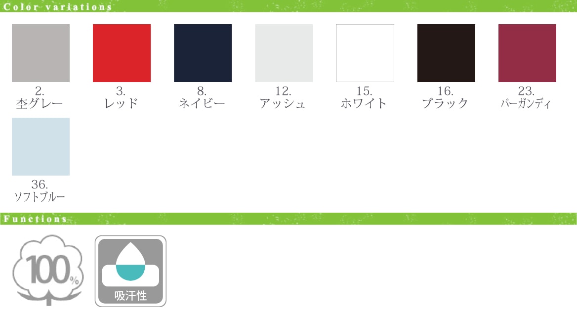 - ■ 混率/綿100% ※[杢グレー]綿90% ポリエステル10%