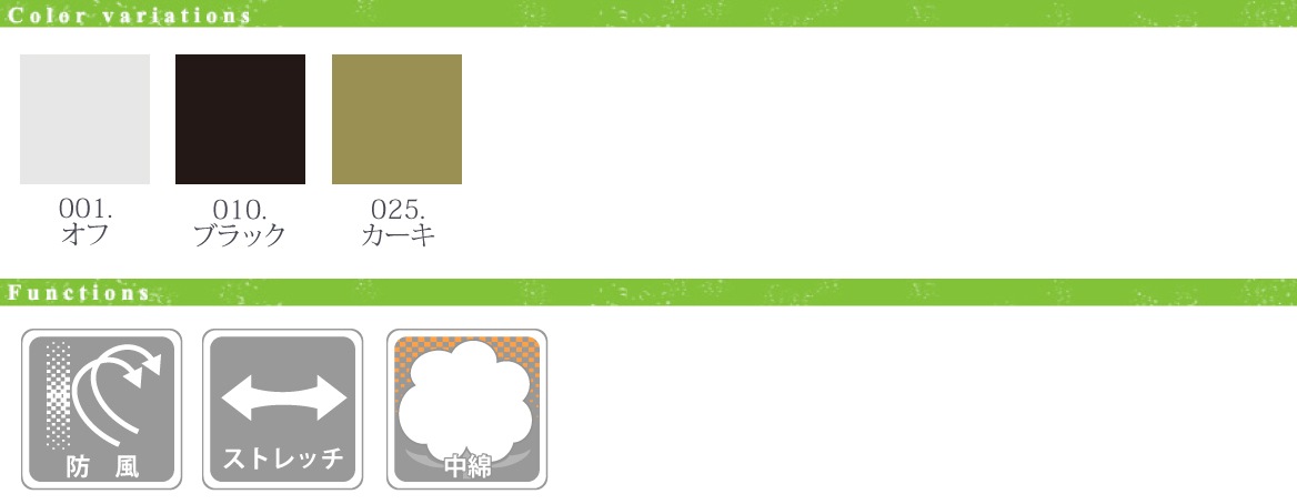 シームレス圧着仕様で、デザイン性と暖かさを兼ね備えた中綿シリーズ。