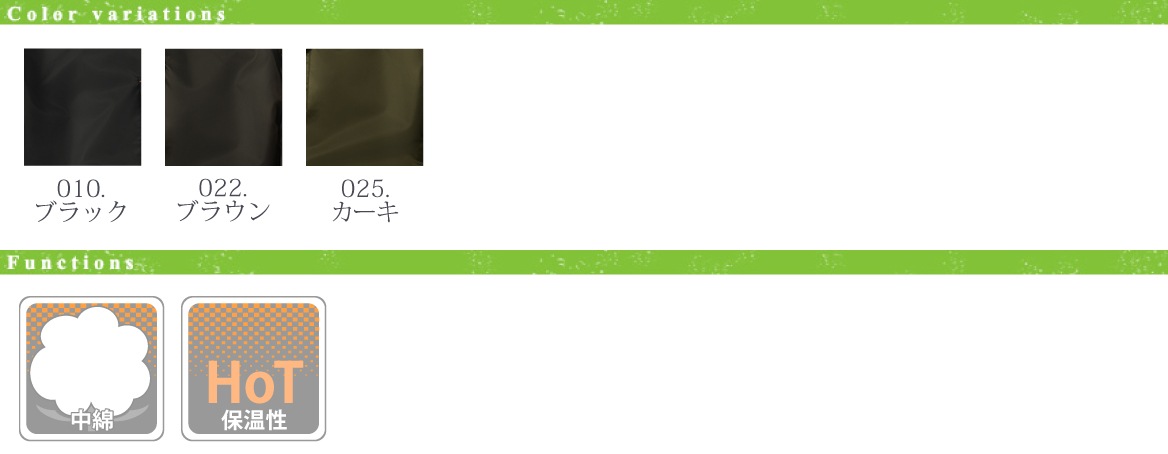 中綿入りなので、日常着や冷えるお仕事現場でも暖かく着用して頂けます。