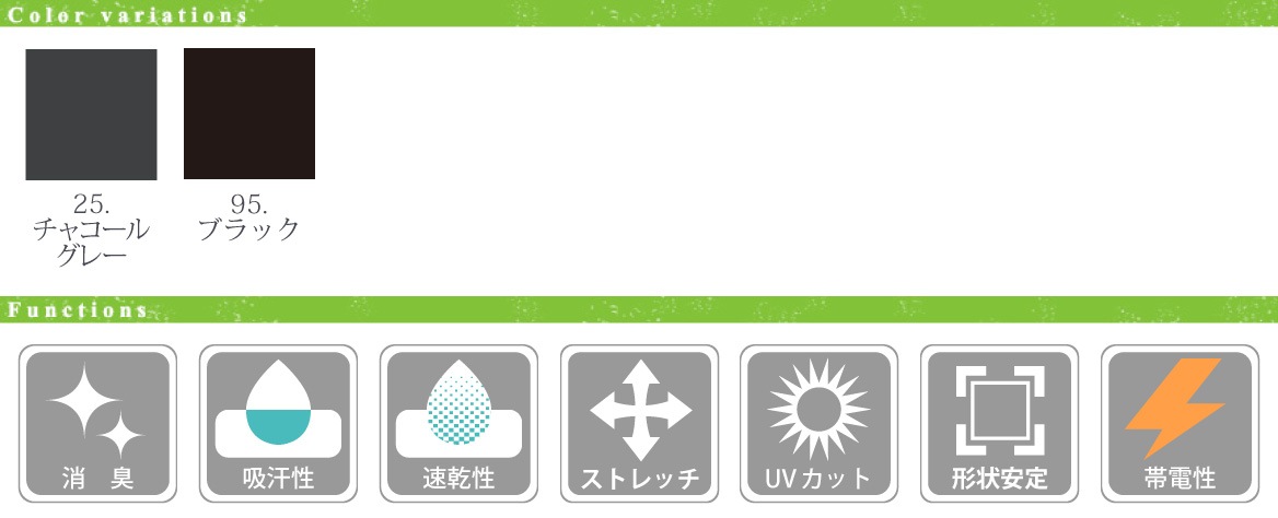 UVカット率90%、形態安定性、ストレッチ性も持つ。