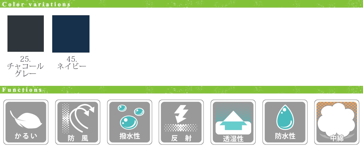 耐水圧5,000mm、透湿性2000/㎡/24hr。