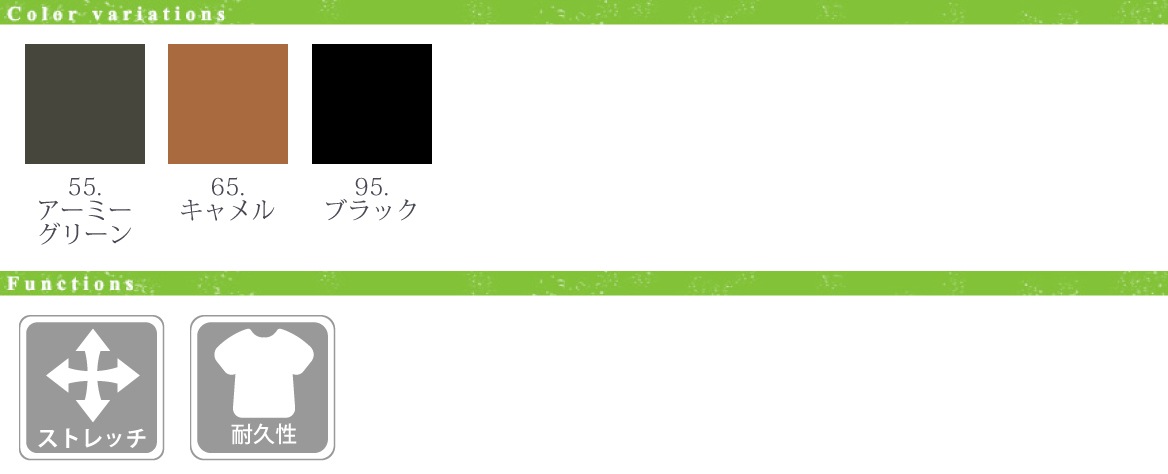 ・強度とストレッチ性(経:27.4%、緯:15.6%)を併せ持つ