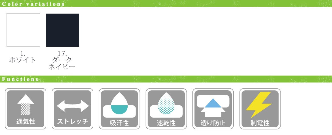 ライトフィックスは軽量で伸縮性があり、吸水速乾、制電機能も備えた素材です。