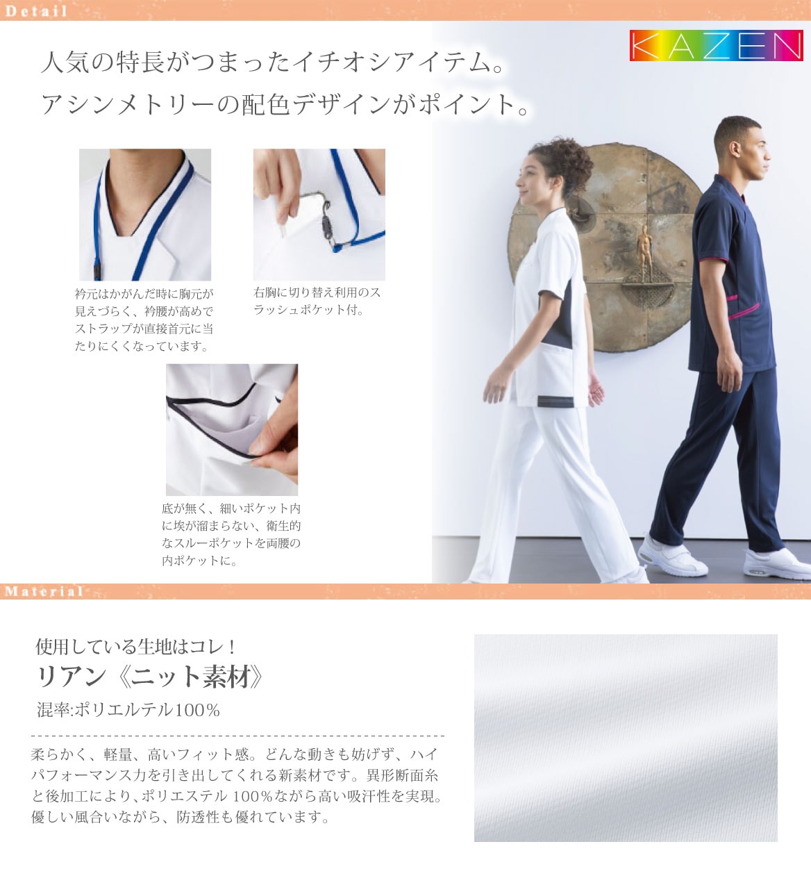- 医療現場でのユニフォームにぴったりなスクラブです。
