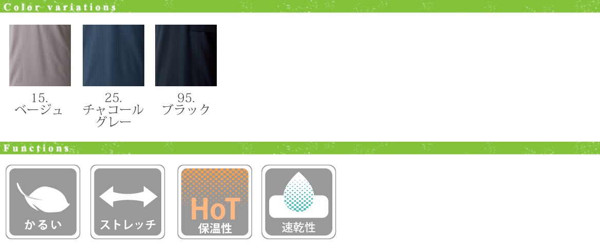 - ■ 軽量、ストレッチ、保温性
