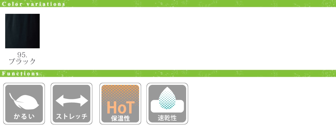 - ■ 軽量、ストレッチ、保温性