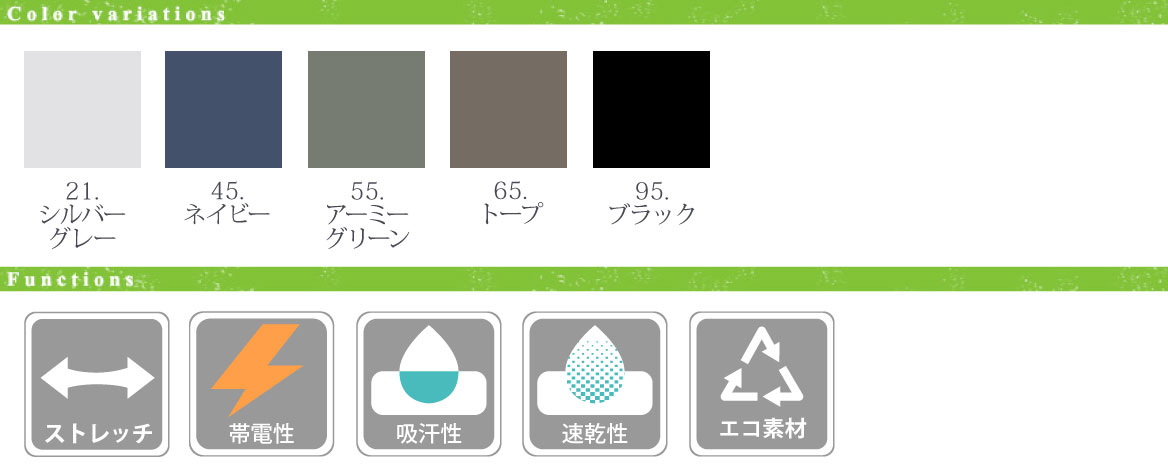 - 混率:ポリエステル50%・綿20%・複合繊維(ポリエステル)20%・ナイロン10%