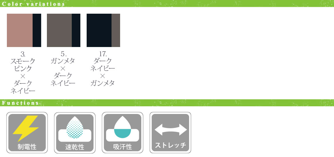 ※3番色・5番色は同素材パンツ(5036SC)とのコーディネートがおすすめ。