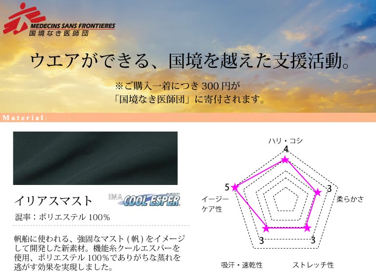 医療パンツ1着につき300円が『国境なき医師団』に寄付されます。