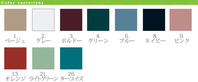 こだわりのカラーバリエーションはどれも色あわせに優れ、トップスとのコーディネートも楽しめます。