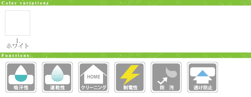 静電制が高く、静電気防止効果は永久に持続。吸水・吸汗性も優れています。