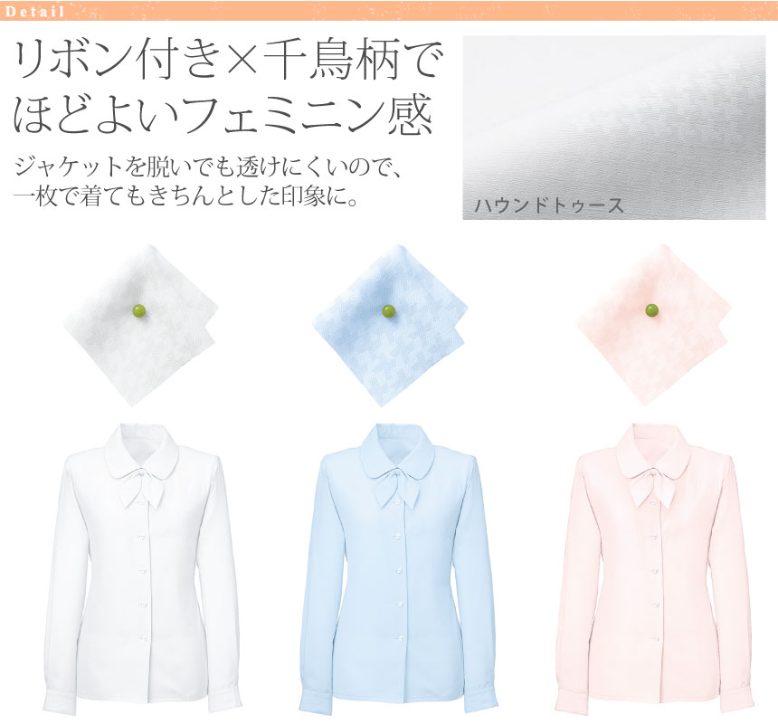 角襟リボン付き×千鳥柄でほどよくシャープ感のある長袖ブラウスです。