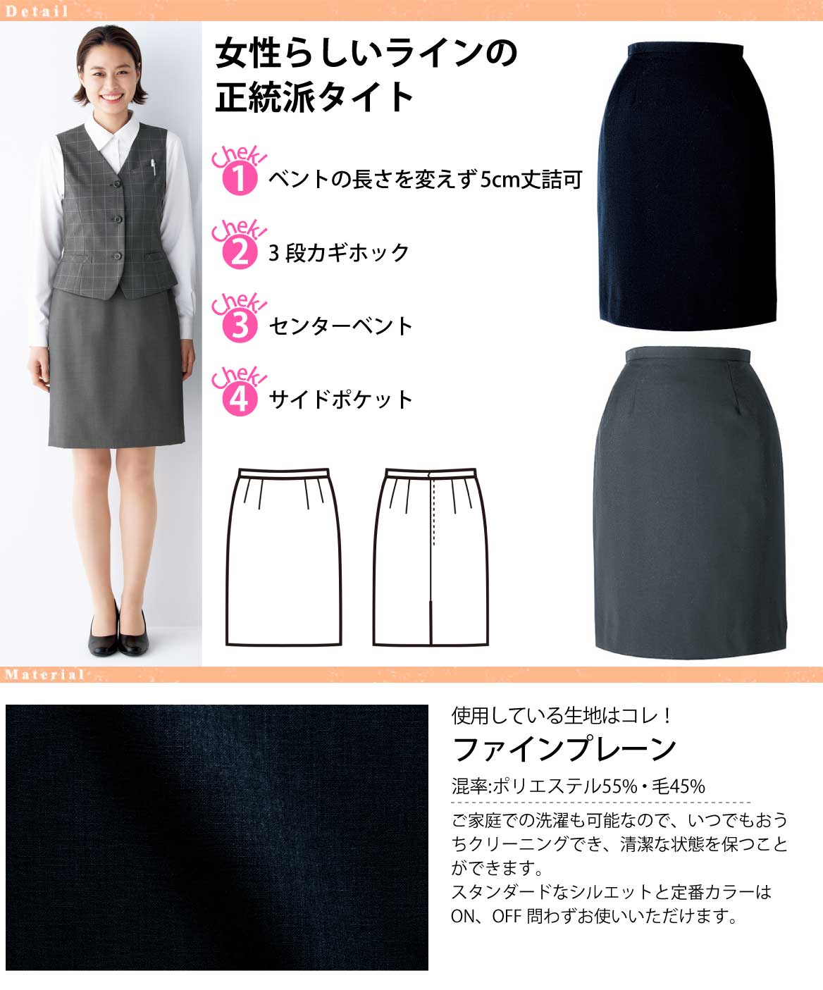 細部にまで、とことんこだわった設計なので、動きやすく快適な着心地が、お仕事の効率アップと女性の笑顔を応援してくれるタイトスカートです。