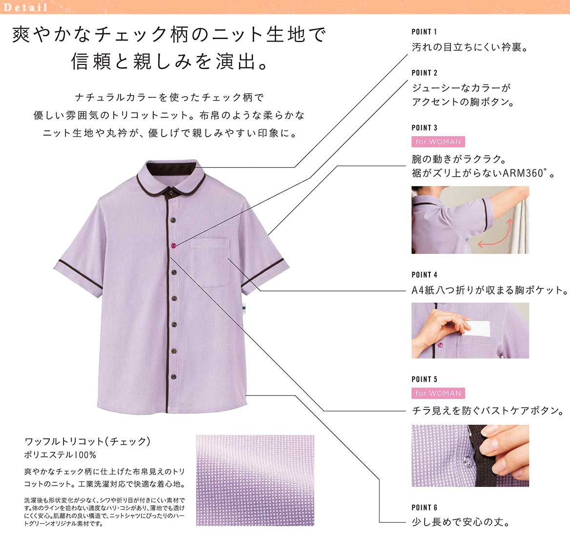 爽やかなチェック柄のニット生地で信頼と親しみを演出。
