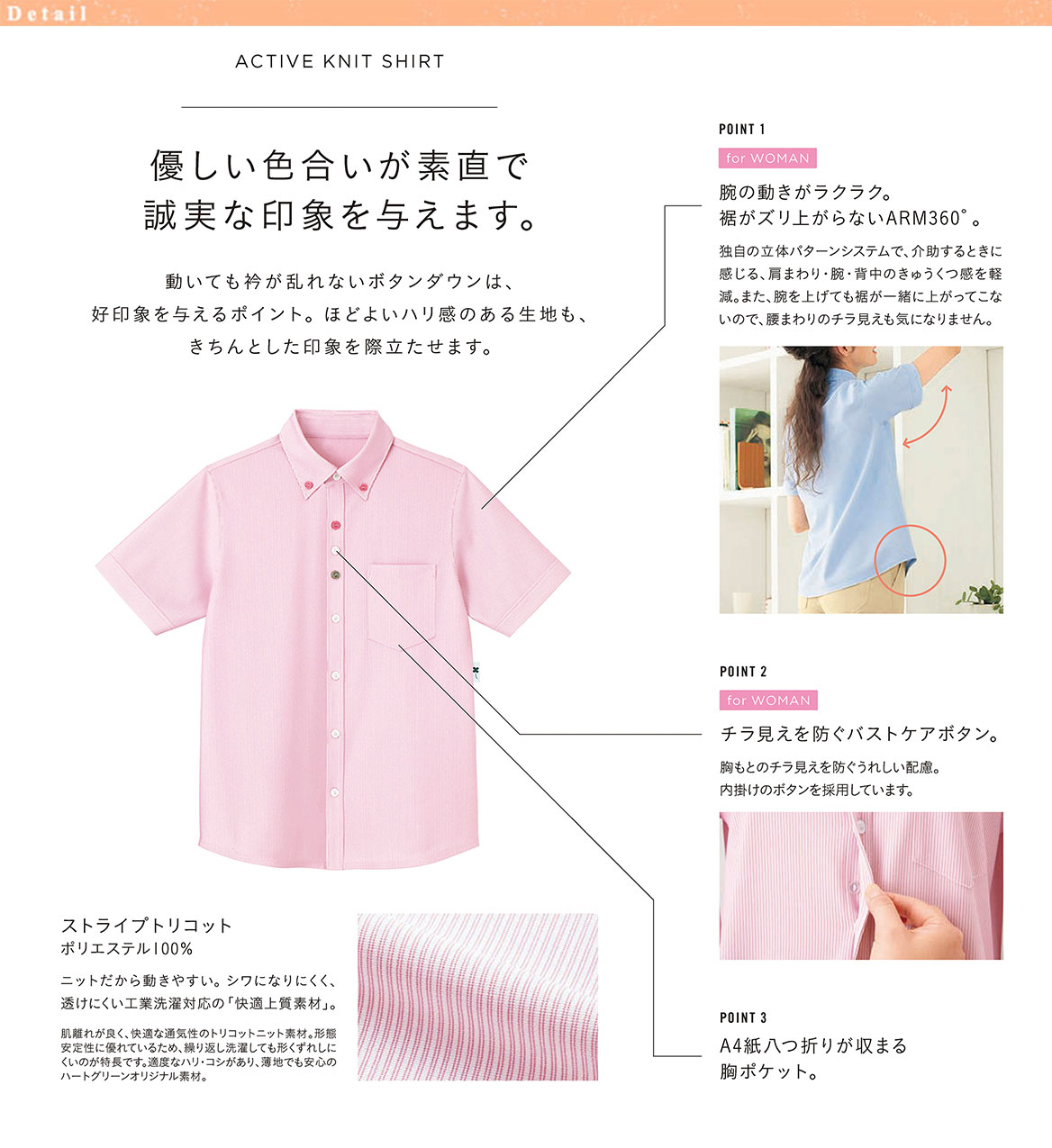 - 柔らかい印象を与え介護の方にもオススメの半袖ニットシャツです!