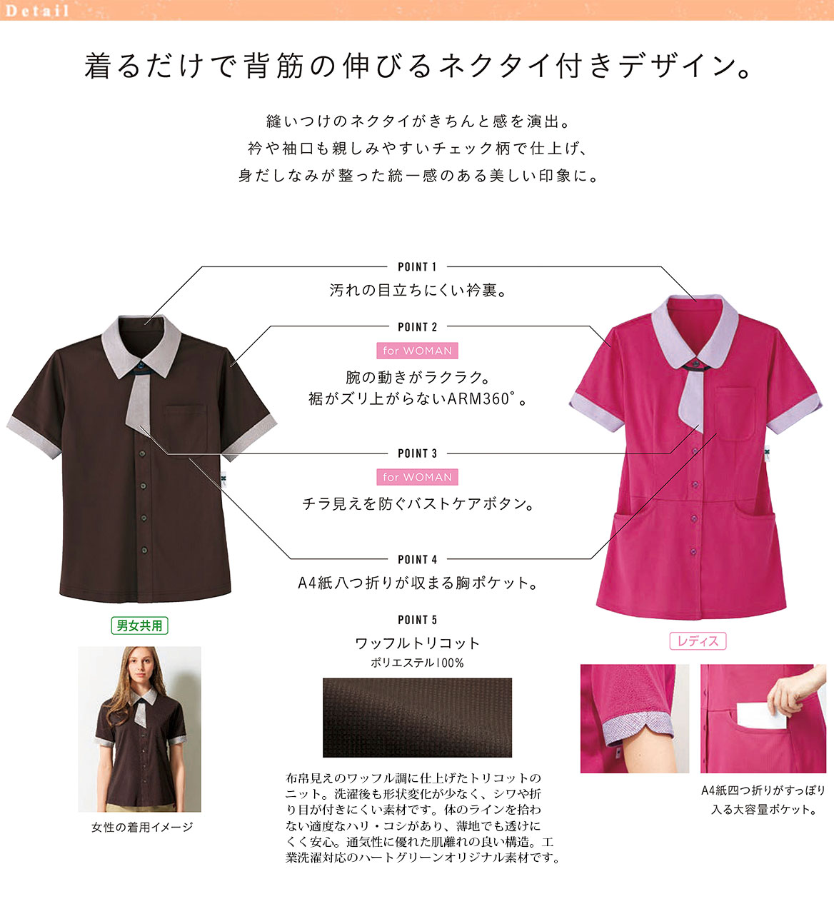 着るだけで背筋の伸びるネクタイ付きデザイン。