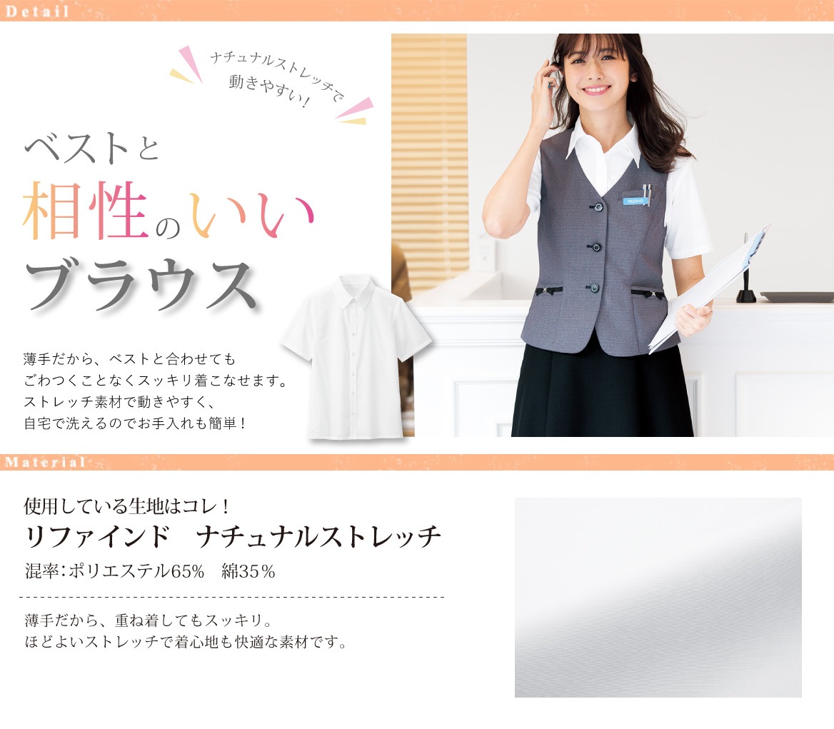 ベストと相性の良い!ナチュナルストレッチで動きやすい薄手の半袖ブラウス