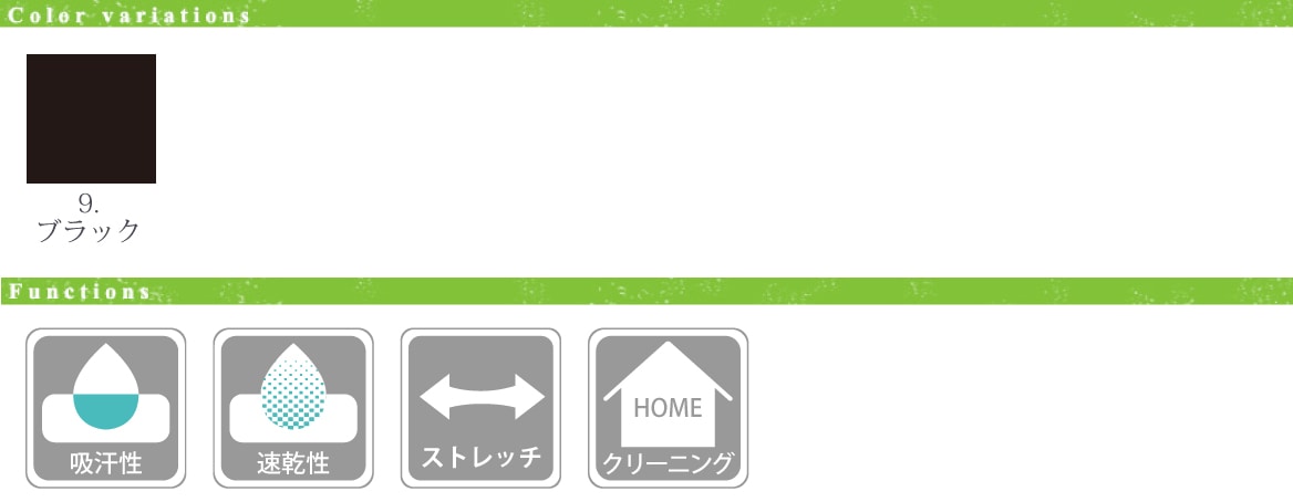 - 柔らかな風合い、優れた吸水性と拡散性、ドライ感を実現させたストレッチ素材のネオαを使用。