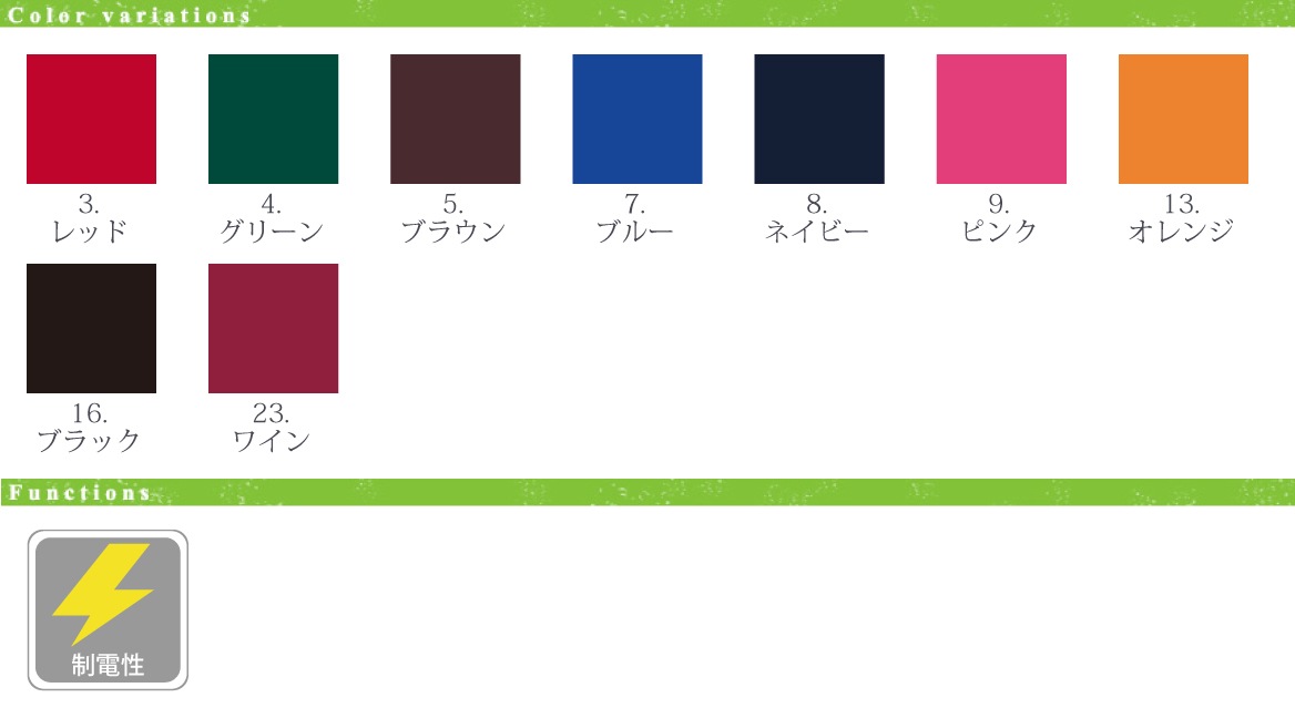 - ワントーンで豊富なカラーバリエーションが介護現場のみならずさまざまな業種に対応できます。