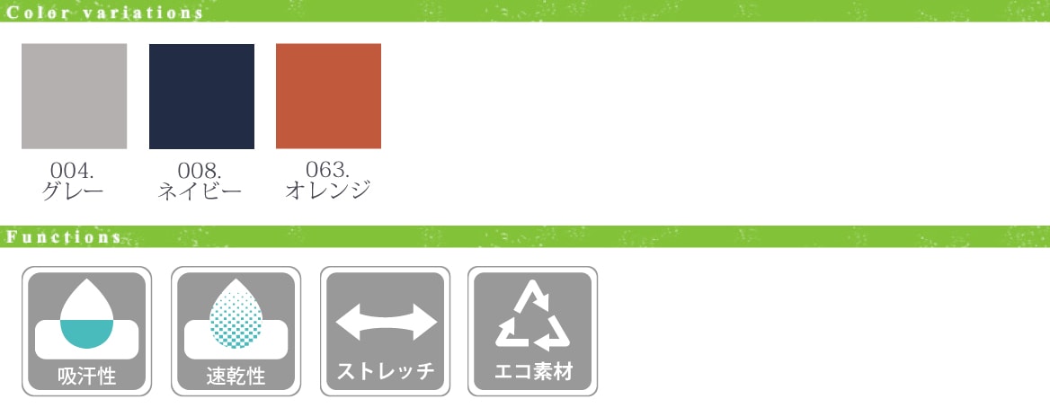 - ■ 機能:動きやすい3D立体構造 吸汗・速乾 ストレッチ