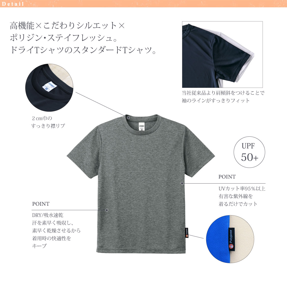 高機能×こだわりシルエット×ポリジン・ステイフレッシュ。ドライTシャツのスタンダードTシャツ。