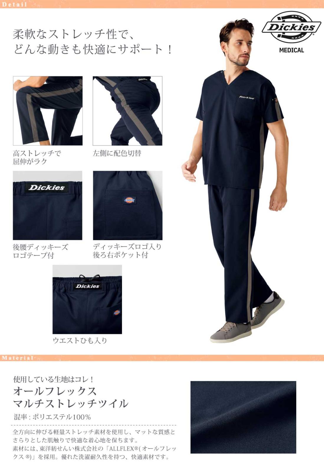 左サイドの配色ラインが目を惹く、ディッキーズ(Dickies)シリーズの男女兼用ストレートパンツ。